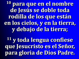 MAS DIOS A LOS SUMO LO EXALTÓ Y SU NOMBRE ENGRANDECIÓ, PARA QUE ANTE SU AUTORIDAD , TODA RODILLA SE DOBLE Y TODA LENGUA CONFIESE QUE JESÚS ES EL SEÑOR